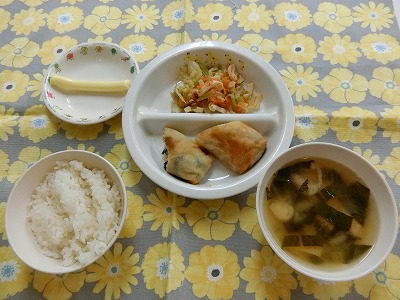 ~今日のお給食~ ・春巻き ・キャベツのおかか和え ・ごはん ・味噌汁(にんじん・油揚げ・こまつな) ・チーズ ~今日のおやつ~ ・そうめん ・豆乳 …