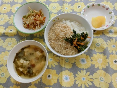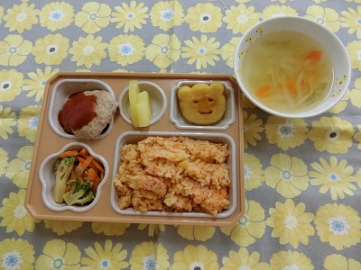 ~今日のお給食~ ・そぼろ丼 ・キャベツのおかか和え ・味噌汁(なめこ・とうふ・わかめ) ・モモ ~今日のおやつ~ ・とうもろこしおにぎり ・牛乳 &…