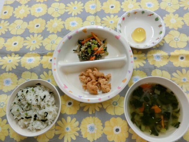~今日のお給食~ ・タンドリーチキン ・もやしの中華和え ・わかめごはん ・春雨スープ ・ミニゼリー ~今日のおやつ~ ・マシュマロサンド ・牛乳 &…