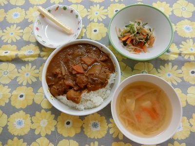 ~今日のお給食~ ・ハヤシライス ・きゅうりのサラダ ・味噌汁(にんじん・もやし・とうふ) ・チーズ ~今日のおやつ~ ・おいなりさん ・カルピス &…