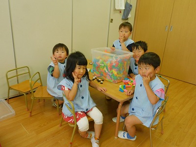 パンダ組さんは、お部屋の中でおもちゃを出して遊びました(^^)/ 遊びたい場所へ移動しながら仲良く遊んでいました! 「かーしーて」「いーいーよ」と順番におもちゃを使う姿も見られました(^^♪