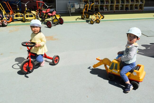 イルカ組さんは英語指導の後、園庭に出て遊びました(^^)/ 水筒と帽子の準備を進んでしてくれました! お砂場や乗り物に乗って遊んでいました☆ …