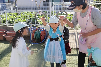 今日はキリン組のお友達が午前中は発表会の練習に取り組んでいました。 ダンスを少しづつ覚えて、みんなで楽しく踊っています。 ダンスの練習の後は、園庭で遊びました。 吊…