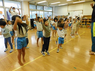 今日はパンダ組の様子です。 体操指導では徒競走の練習をしました。 いちについて・・・よーいドン! の掛け声に合わせて走る準備をする ことが出来るようになってきました。  …