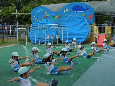 今日はキリン組の体操指導の様子です。   怪我をしないように準備体操をして 組体操の練習開始!   「手裏剣」 「笹船」 「ヨット」   教えて頂いた技を1つ1つ確認し、どうす…