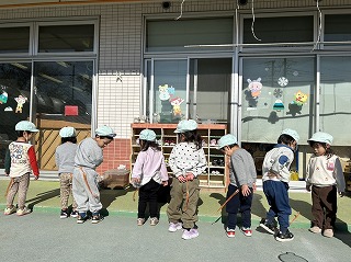 今日は、園庭に出て遊びました(*^^*) 乗り物に乗ったり鬼ごっこをしたりして元気に遊んでいました! 他のクラスのお友達にも話しかけ、できないことがあると率先して 大きい子がお世話をしてくれました(^_-)-☆