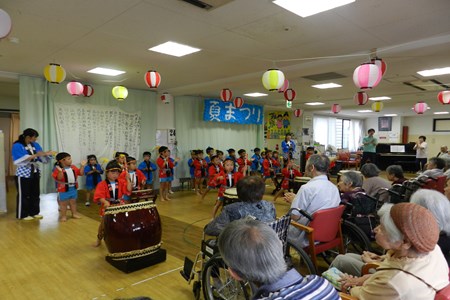 今日は草加なかよし保育園第9回目の 夏祭りを実施しました☆ まずはライオン組のお友達のオープニング太鼓です! 力強く演奏してくれました!!  …
