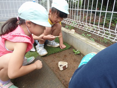 今日ライオン組のお友達は 園庭で遊びました♪ みんなで虫探しです☆ だんごむしやありなどを見つけたくさん集めて お友達同士見せ合って楽しんでいました♪ …