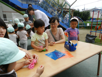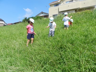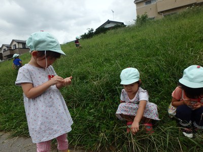 本日は保育部、幼稚部一緒に治水緑地にお散歩に行きました。 恒例の虫探しではショウリョウバッタを見つけました。(^^) 保育部さんは幼稚部のおにいさん、おねえさんに遊んでもらってご機嫌です♪ 幼稚部さんは午後も園庭で遊びま…