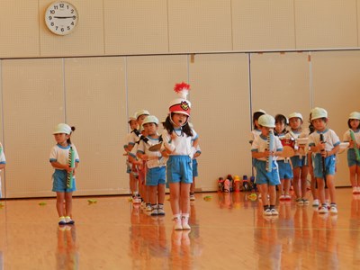 本日幼稚部さんは谷塚文化センターで運動会の練習をしました。 まずはマーチングです。大きな声、大きな音が出せるようになりました。 他に組体操とソーラン節も練習しました。 最後はリレーの練習をしました。 自分のチームが勝てる…