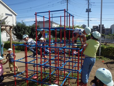 本日は運動会のリハーサルを行いました。 午後、幼稚部さんは園庭で遊びました。 夏祭りから片付けてあった遊具も戻りとってもにぎやかです。 他にもつり橋や太鼓橋が戻り目いっぱい遊んだ幼稚部さんでした。