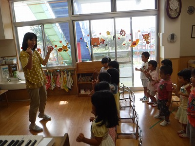 本日は英語教室を行いました。 パンダ組さんも楽しくお勉強しました。 歌いながら出てくる体の部位を触っていきます。 イラストカード 最後は輪になって踊りながら歌で覚えていきます。 最近、お部屋に英語名の入った…