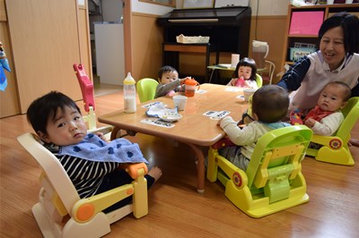 今日ラッコ組さんはおやつを食べてからテラスで遊びました。 保育園にも大分なれてみんなでおやつを食べてます。 テラスへ移動。 帽子を被ってから本格的に遊びました。 お外も気持ちいいね(*^_^*)