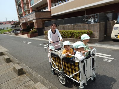 今日ペンギン組さんは治水緑地にお散歩に行きました。 徒歩とカートで移動です。道路を渡るときはちゃんと左右の確認をします。 幼稚部さんも治水緑地にお散歩でした。 おにいさん、おねえさんにいっぱい遊んでもらいましたよ(*^_…