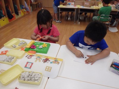 ペンギン組さんは午後室内で遊びました。 お昼寝中のひととき、癒されます。(*^_^*) タスキ掛けの子はお人形を背負って子守ごっこしていますよ。 お料理セットを出しています。ペンギン組さんでは大人気です。 土屋先生に遊ん…