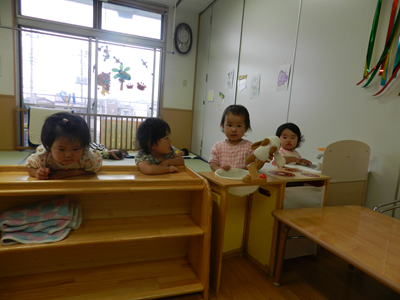 今日はクラス交流(縦割り保育)がありました。 ラッコ組とペンギン組の仕切りをとって広く した部屋にキリン組さんがラッコ組さんと 遊びにきました。 ラッコ組さんは大きいお兄さんお姉さんと一緒でとても 嬉しそう…