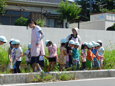 今日、幼稚部さんは園庭周辺で清掃 活動を行いました。 先生の説明を良く聞いて一人2個拾います。 継続している活動なので、細かい指示がなくてもきちんと 行動できている…