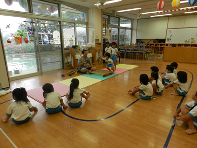 夏祭りのリハーサルを行いました(#^.^#) イルカ組さんと幼稚部さんは盆踊りの練習をしました! 「まーる、まーる…..」 本番上手に踊れるよう朝の盆踊りの練習 頑張ろうね(^^)…