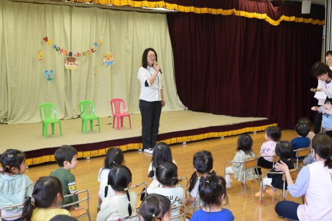 今日は、4月生まれのお友達のお誕生日会がありました(^^♪ 園長先生や司会の先生のお話をよく聞いていました! お誕生日のお友達が呼ばれて順番にインタビューを受けました(^^)/ みんな上手に答えることが出来ていました♡ …