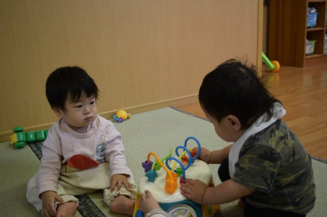 保育園での生活にも少しずつ慣れ、 ラッコ組のお友達はいろいろなもの興味がでてきました★ お部屋で知育おもちゃを出すと みんな興味津々! …