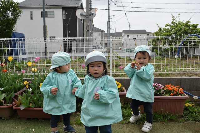 今日はペンギン組のお友達が園庭で遊びました。 お花が大好きなお友達が多く、園庭に出るとみんなでよくお花の観察をしています。 チューリップの花びらに触ってみたり、タンポポのお花を見…