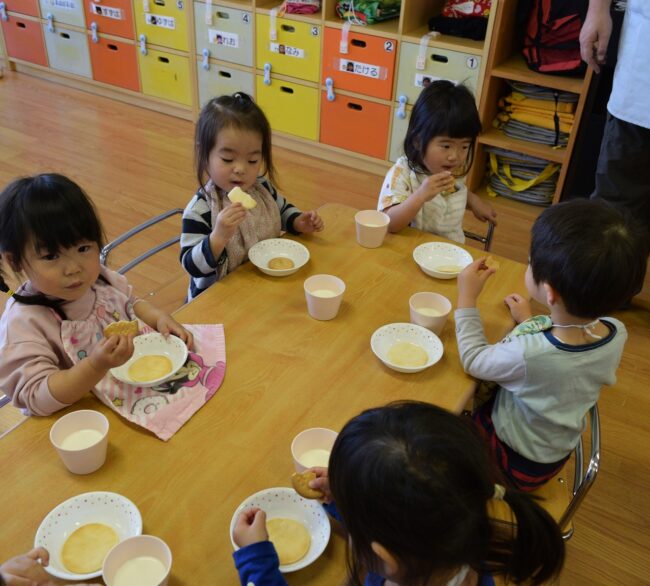 今日イルカ組のお友達は お部屋で新聞紙遊びをしたり、お散歩に行ったりして 過ごしました♪ お昼寝のあとはみんなが楽しみにしている おやつの時間です★ …