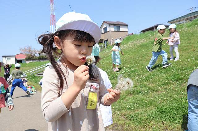 今日は幼稚部のお友達が治水緑地にお散歩に行きました。 治水緑地にはシロツメクサの花やたんぽぽの綿毛が沢山ありました キリン組のお友達はたんぽぽの綿毛を沢山集めて「ふ…