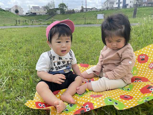 今日はラッコ組のお友達がカートの乗って治水緑地までお散歩に行きました。 ゆらゆら揺れて気持ちよさそうにしています。 車が通ると指差しをしながら「ぶーぶ…