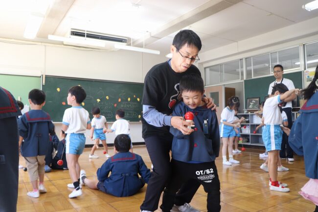 今日はライオン組の様子です 午前中に、瀬崎小学校までお散歩に行き 草加あおぞら保育園の5歳児と瀬崎小学校の校長先生 教頭先生とけん玉を通して交流を行いました けん玉を持って保育園を出発! 瀬崎小学校に到着すると校長先生が…
