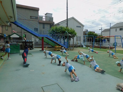 ライオン組さんは、体操指導に参加しました(^^)/ 組体操の練習が少しずつ始まっています! キリン組でもやっていたので、思い出しながら一生懸命 講師の先生のアドバイスを聞き、頑張って真似をして…