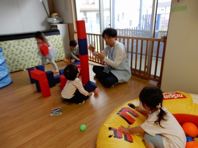 今日は、雨が降っていたので室内で過ごしました(^^♪ 午前中はみんなでボールプールやソフトブロックなどを出して遊びました★ ボールを投げたりブロックを積み上げたり好きな遊びを楽しんでいました(^^)/ クラスのお友達関係…