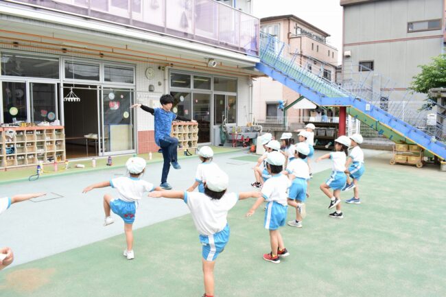 今日はきりん組の様子です 午前中は体操指導がありました 体操が始まり、まーくん先生に元気よく 「おはようございます!」と挨拶する姿がありました 準備運動では、体を伸ばしたり、体を温めるだけでなく 片足でバランスを取るなど…
