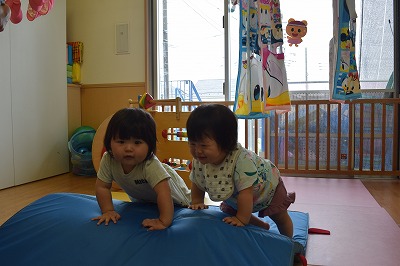 今日ラッコ組のお友達は 室内で体を動かして遊びました♪ マットを使って坂を作り、のぼったり、降りたりして 楽しみました! …