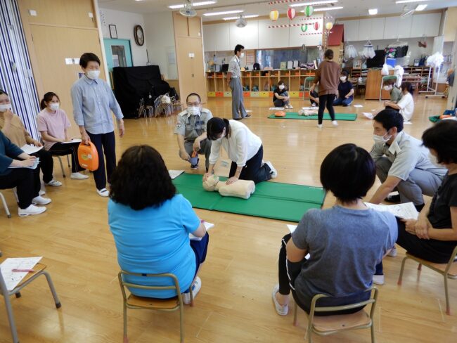 草加なかよし保育園にて、普通救命講習を受講しました。 消防隊員の方に来ていただき、 人工呼吸、胸骨圧迫、AED操作方法等 直接ご指導いただきました。 …