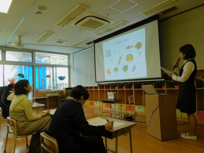 本日は0歳児ラッコ組を対象にした 離乳食講座を開催しました。 栄養士から離乳食の進め方や現在の食事の様子などを お話しました。 ぜひご家庭での食事の参考にしていただ…