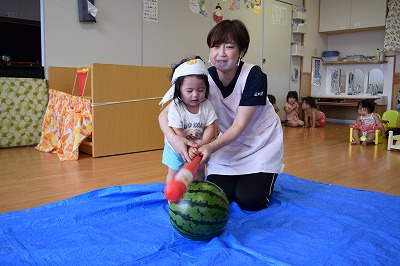 一日保育士体験 スイカ割り・流しそうめん 誕生日会