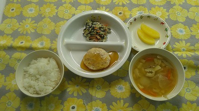 ~今日のお給食~ ・豆腐ハンバーグ ・キャベツとひじきの和風コールスロー ・ごはん ・豚汁 ・りんご ~今日のおやつ~ ・牛乳 ・コーンフレーク &n…