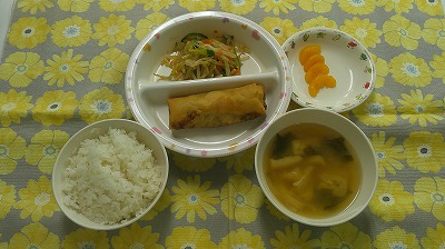 ~今日のお給食~ ・春巻き ・もやしのナムル ・ごはん ・味噌汁(わかめ・だいこん・油揚げ) ・みかん ~今日のおやつ~ ・牛乳 ・フライドポテト &…