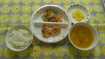 ~今日のお給食~ ・厚揚げの味噌炒め ・大根サラダ ・ごはん ・コンソメスープ(にんじん・こまつな・たまねぎ) ・モモ ~今日のおやつ~ ・やきいも ・牛乳 &nb…