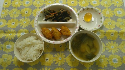 ~今日のお給食~ ・ツナと豆腐の落とし揚げ ・ひじき煮 ・ごはん ・味噌汁(わかめ・きのこ・とうふ) ミニゼリー ~今日のおやつ~ ・マシュマロコーンフレーク ・牛…