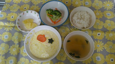 ~今日のお給食~ ・ハロウィンシチュー ・ブロッコリーのサラダ ・ごはん ・コーンスープ ・パイン ~今日のおやつ~ ・おばけチップス ・牛乳 &nb…