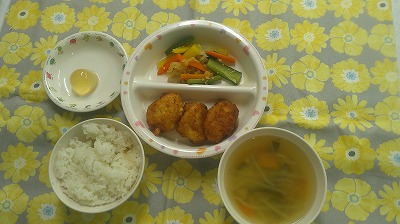 ~今日のお給食~ ・ツナと豆腐の落とし揚げ ・カミカミ和え ・ごはん ・味噌汁(もやし・にんじん・わかめ) ・ミニゼリー ~今日のおやつ~ ・コーンフレーク ・牛乳 …