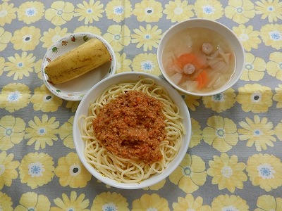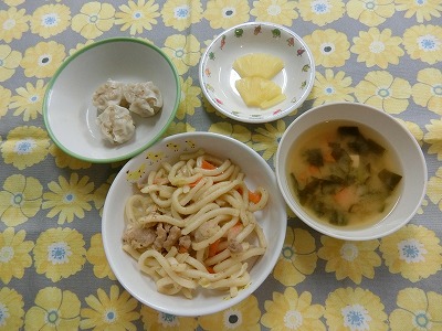 ~今日のお給食~ ・焼きうどん ・しゅうまい ・味噌汁(小松菜・にんじん・とうふ) ・パイン ~今日のおやつ~ ・揚げパン ・牛乳 &n…
