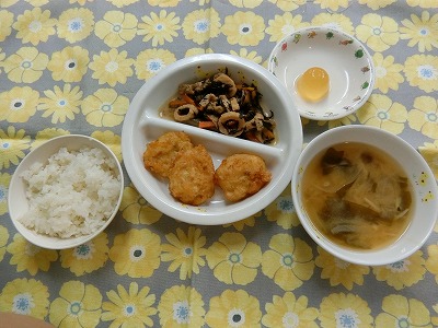 ~今日のお給食~ ・ツナと豆腐の落とし揚げ ・ひじき煮 ・ごはん ・味噌汁(わかめ・きのこ・たまねぎ) ・ミニゼリー ~今日のおやつ~ ・フルーツヨーグルト ・麦茶…