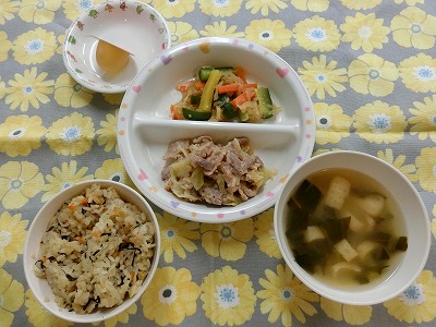 ~今日のお給食~ ・ハヤシライス ・春雨サラダ ・コンソメスープ(小松菜・コーン・にんじん) ・みかん ~今日のおやつ~ ・牛乳 ・そうめん &nbs…