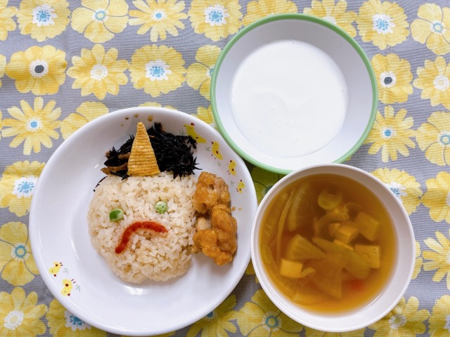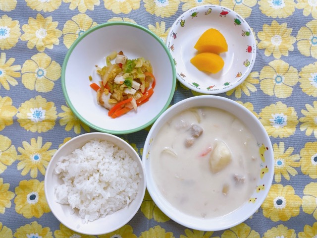 ~今日のお給食~ ・カレーライス ・もやしのナムル ・味噌汁(なめこ・小松菜・豆腐) ・みかん ~今日のおやつ~ ・牛乳 ・ホットケーキ …