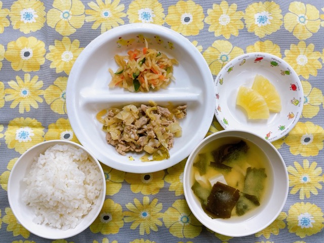 ~今日のお給食~ ・豚肉のしょうが焼き ・大根サラダ ・ごはん ・味噌汁(しめじ・豆腐・わかめ) ・パイン ~今日のおやつ~ ・牛乳 ・ピザ &nbs…