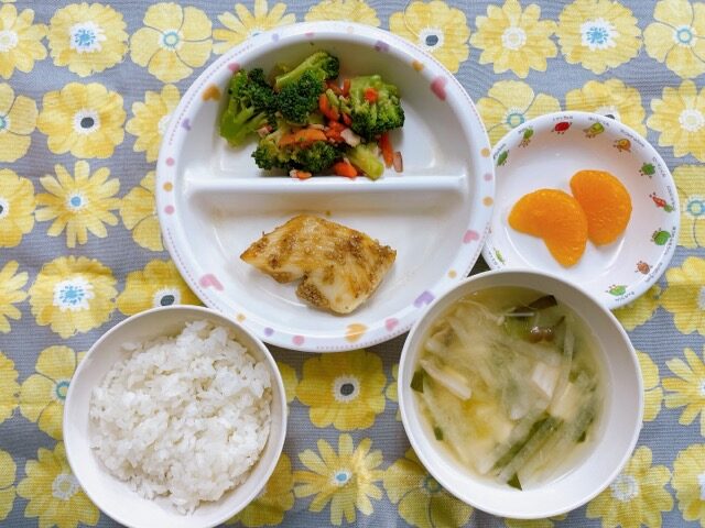 ~今日のお給食~ ・カレイのごま照り焼き ・ブロッコリーのサラダ ・ごはん ・味噌汁(エリンギ・えのきたけ・しめじ・だいこん・小松菜) ★イルカ組(2歳児)のお友達がきのこを割いてくれました ・みかん &n…