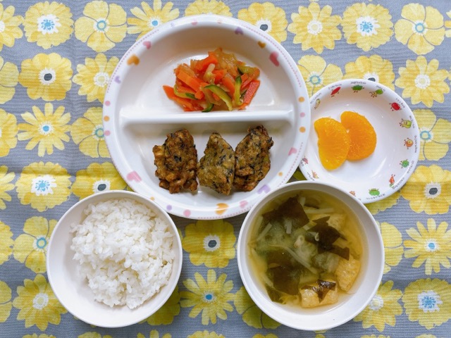 ~今日のお給食~ ・豆腐の落とし揚げ ・大根サラダ ・ごはん ・味噌汁(わかめ・もやし・にんじん) ・みかん ~今日のおやつ~ ・牛乳 ・さつまいもス…