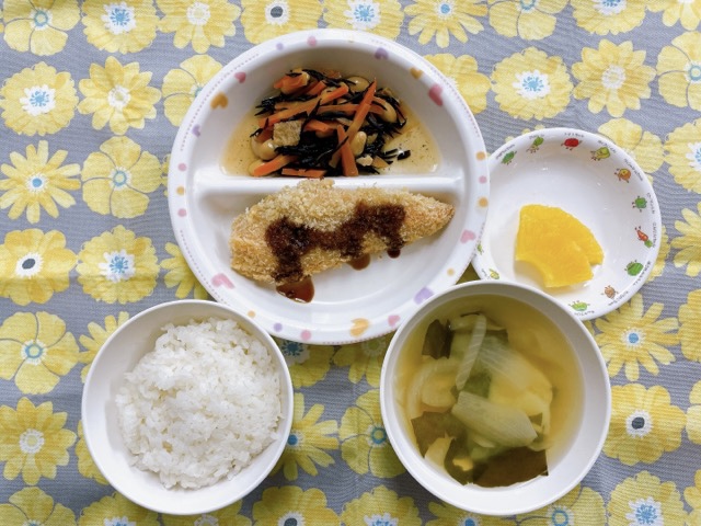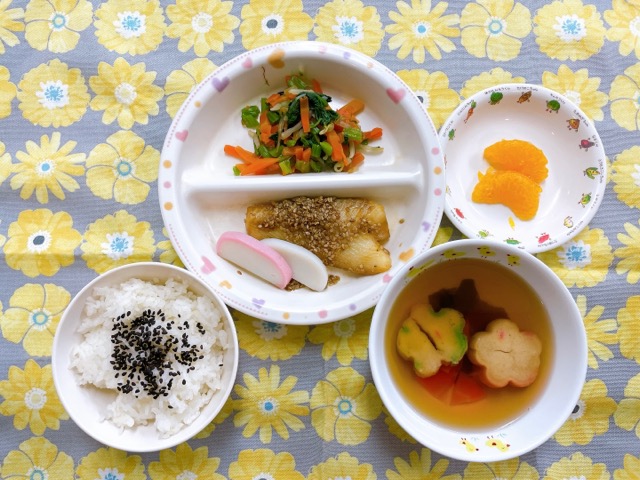 ~今日のお給食~ ・カレイのごま照り焼き ・小松菜サラダ ・ごはん ・すまし汁(花麩・わかめ・にんじん) ・みかん ~今日のおやつ~ ・…